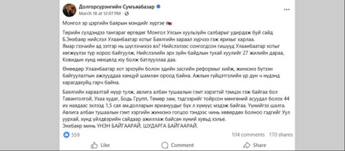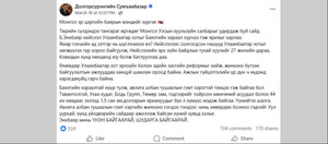 Хотын дарга асан Д.Сумьяабазараас Хууль зүйн сайд Б.Энхбаярт хаягласан “мэндчилгээ”
