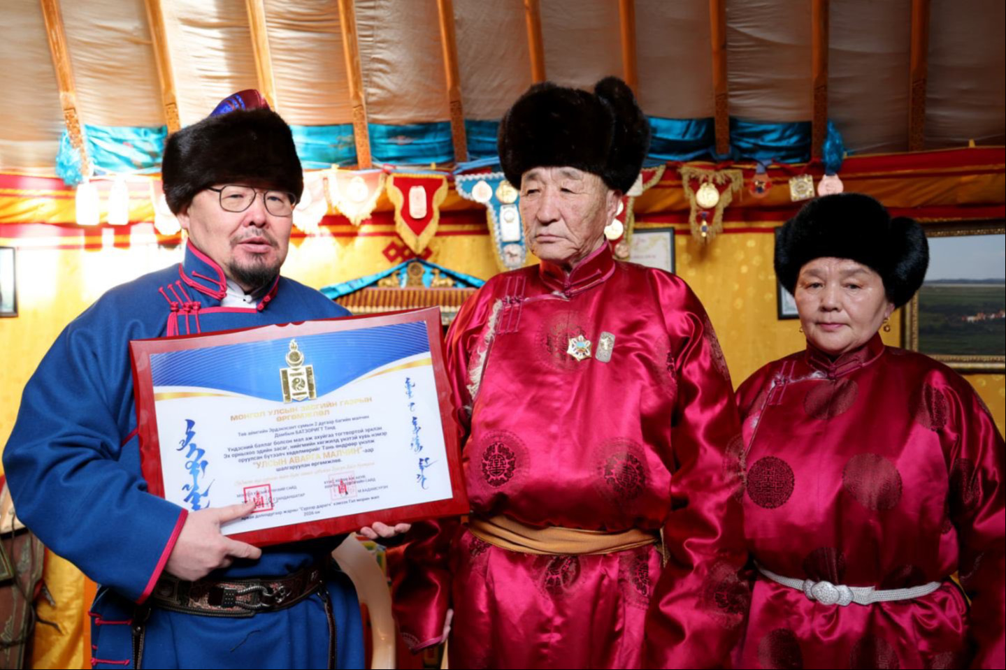 Монгол Улсын Ерөнхий сайд Г.Занданшатар Төв аймгийн Эрдэнэсант суманд ажиллаж, өвөлжилтийн байдалтай танилцах үеэрээ Их баянгийн Шартолгойн өвөлжөөнд нутаглаж буй малчин Дамбын Батзоригтод “Улсын аварга малчин” шагнал гардуулж, хүндэтгэл үзүүллээ.