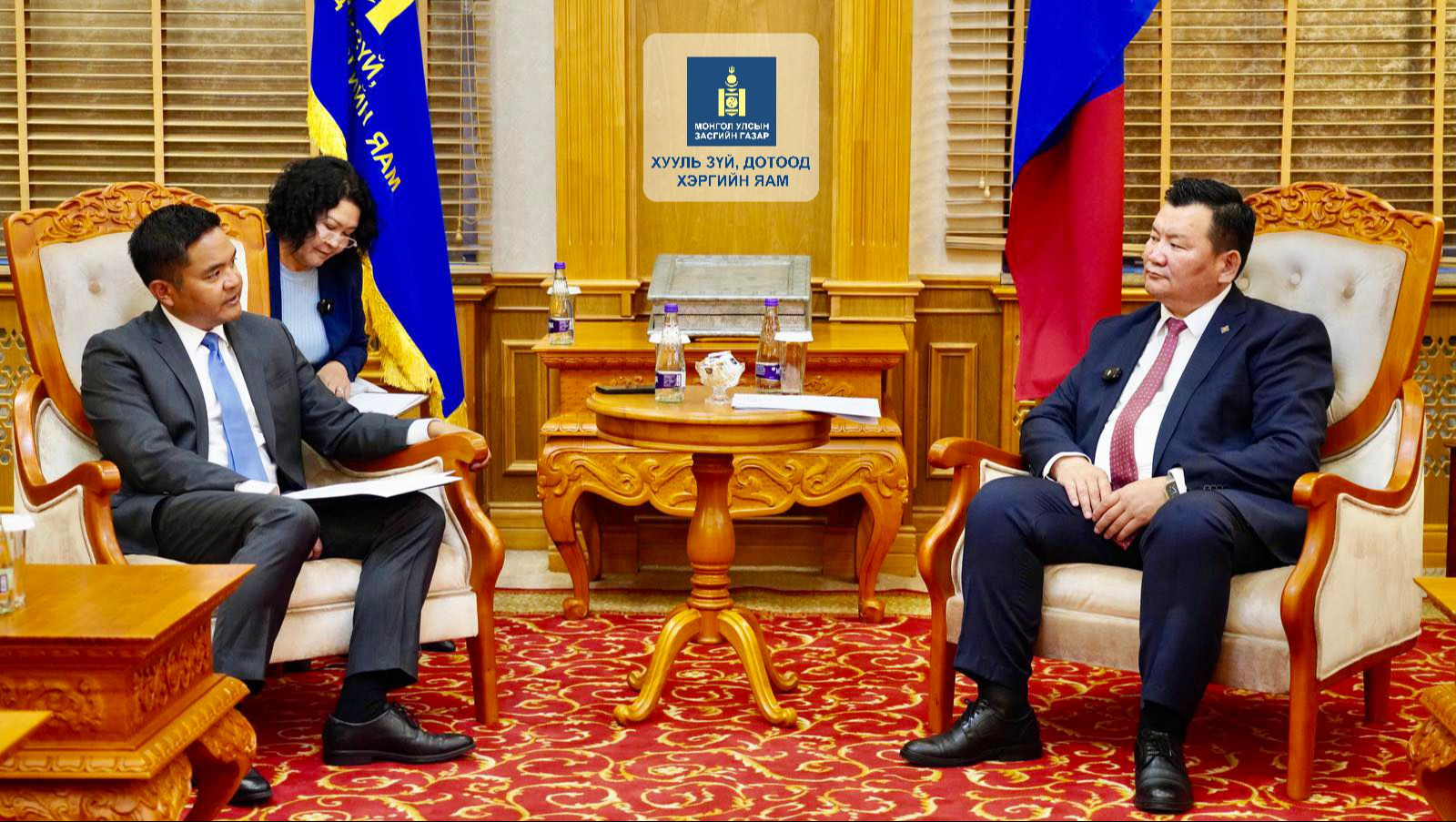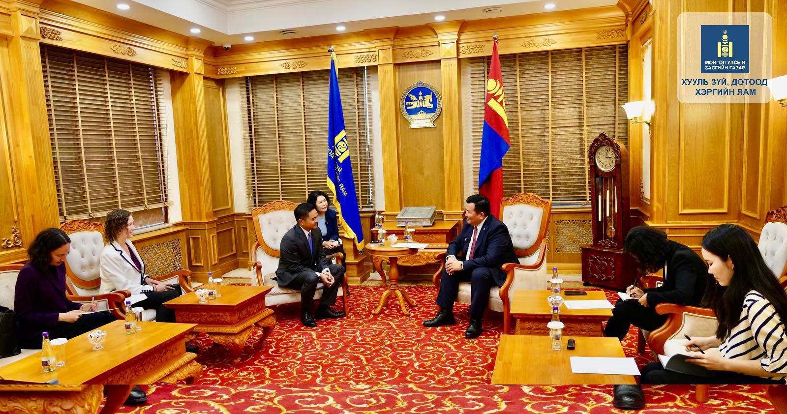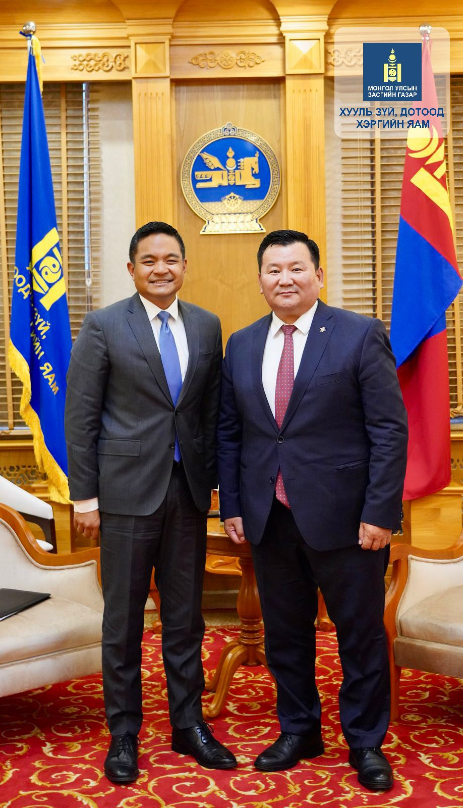 АНУ-аас Монгол Улсад суугаа Онц бөгөөд Бүрэн Эрхт Элчин сайд Ричард Буангантай Хууль зүй, дотоод хэргийн сайдын хувиар уулзаж, хоёр орны хууль зүйн салбарын хамтын ажиллагаа, цаашид хэрэгжүүлэх төсөл хөтөлбөрүүдийн талаар санал солилцлоо.