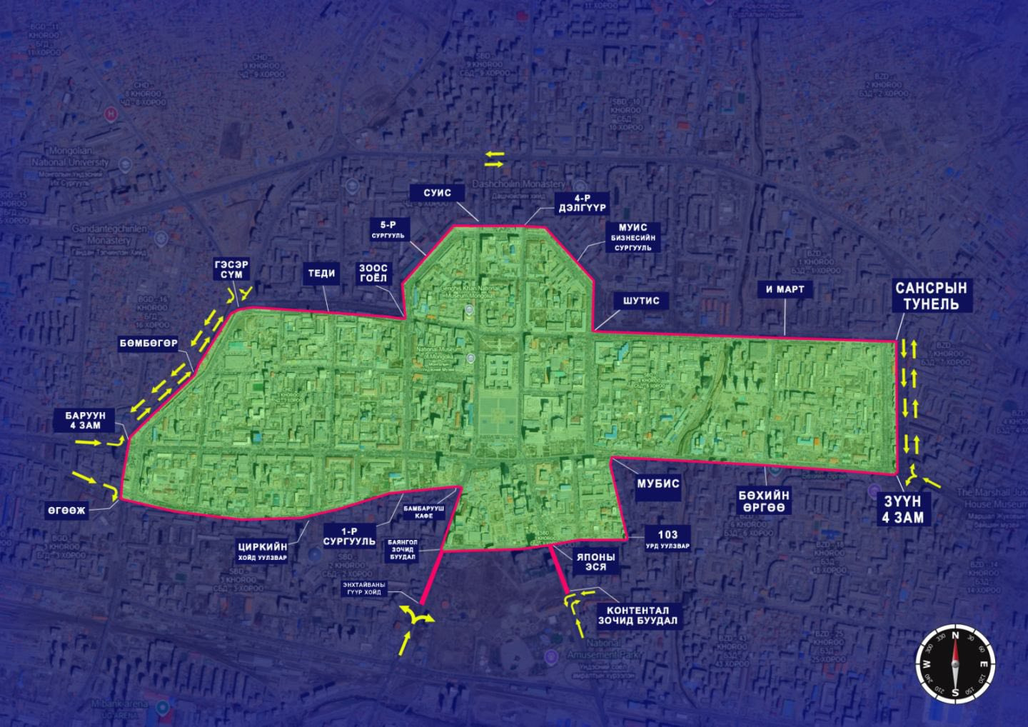 “Автомашингүй өдөр”-өөр 7:00-18:00 цагийн хооронд дараах гудамж, замуудыг хаана. Тодруулбал,